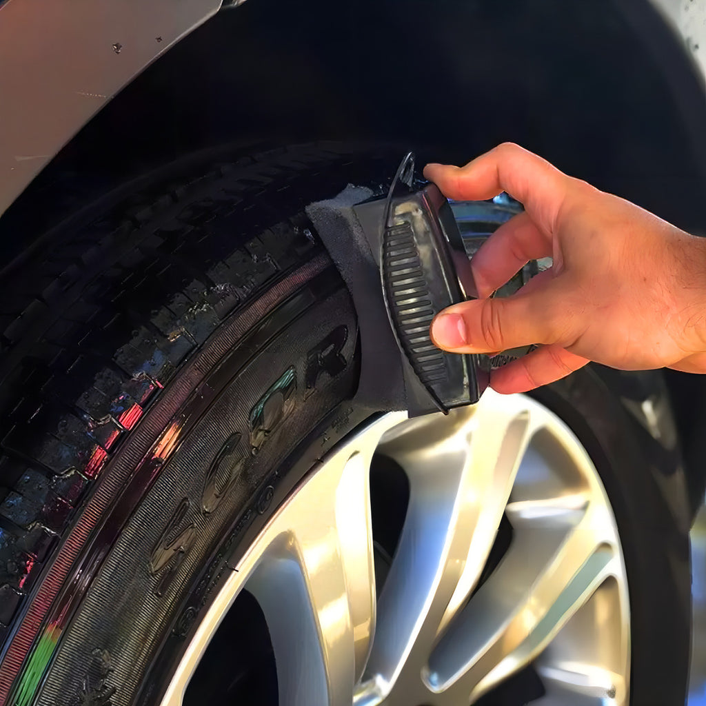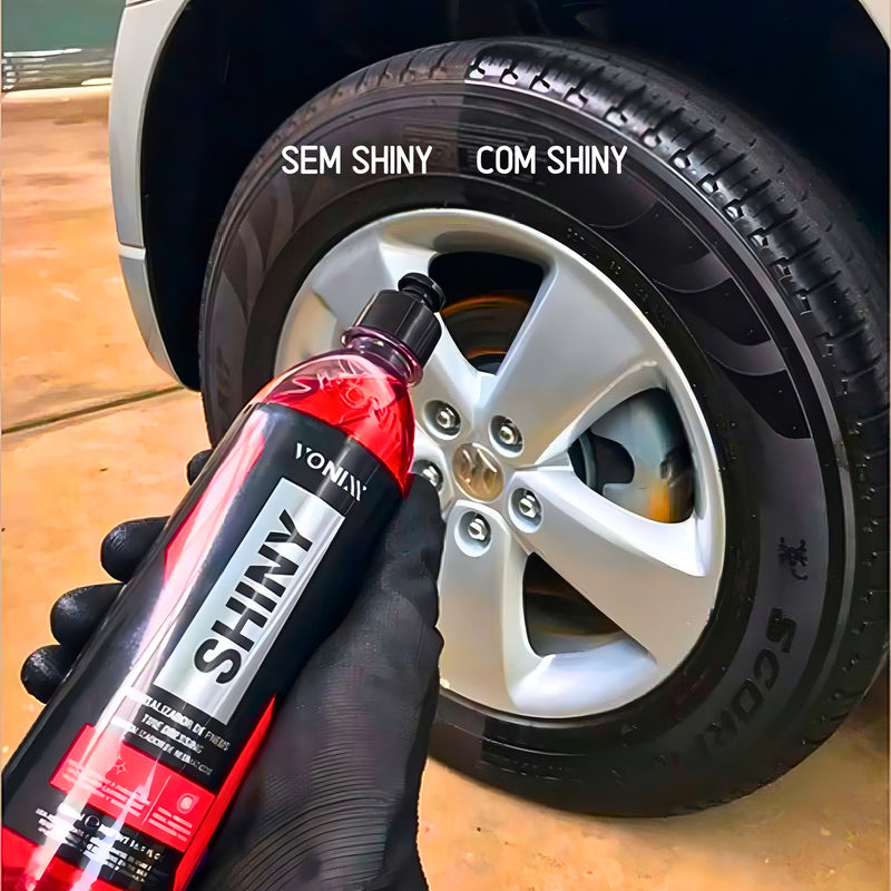 SHINY is a long-lasting tire dressing that revitalizes, protects, and delivers an intense wet-look shine. Its water-resistant formula ensures durability for up to 60 days, with 15–20 applications per bottle (small cars).