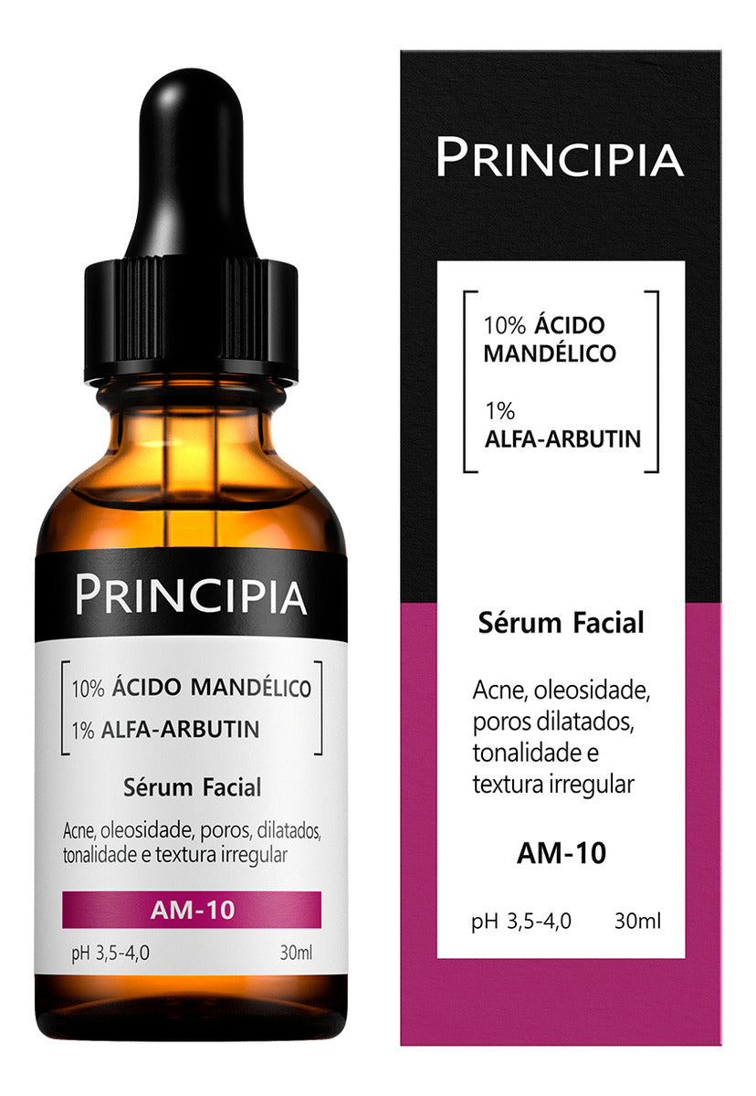 Am-10 Principia Serum is a powerful skincare solution featuring 10% Mandelic Acid and 1% Alpha-Arbutin, designed to enhance your skin's luminosity while effectively addressing blemishes and acne.