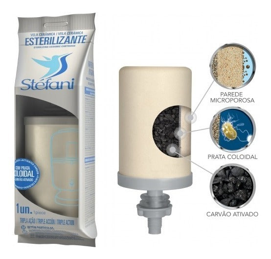Uitgerust met een Ceramische Sterilisatiekaars (Drievoudige Actie), die een microporeuze keramische wand heeft. Deze wand filtert solide deeltjes en onzuiverheden, terwijl geactiveerde koolstof het chloor, geuren en smaken in het water reduceert. Colloïdaal zilver elimineert bacteriën, allemaal zonder chemische toevoegingen.