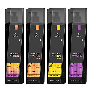 Plasthair Bixyorellan é um sistema profissional de reconstrução e alinhamento capilar, formulado com um poderoso blend de ativos que revitalizam a fibra capilar enquanto promovem um efeito disciplinante duradouro. Desenvolvido para atender diferentes tipos de cabelo, o sistema conta com um Passo 1 (Shampoo Preparatório) e três variações de Passo 2 (Máscaras Reconstrutoras), cada uma direcionada para necessidades específicas dos fios. Sua fórmula avançada traz ingredientes como D-Panthenol, queratina hidrolisada, extrato de mel, óleos nutritivos e antioxidantes naturais, que fortalecem a estrutura capilar, restauram a elasticidade e proporcionam brilho intenso. O tratamento reduz o frizz, mantém os cabelos alinhados e garante hidratação profunda sem comprometer a leveza dos fios. Seja para cabelos loiros e mechados, coloridos ou mais resistentes, Plasthair Bixyorellan oferece resultados visíveis desde a primeira aplicação, tornando-se um aliado indispensável para o profissional cabeleireiro que busca segurança, eficácia e personalização nos tratamentos.